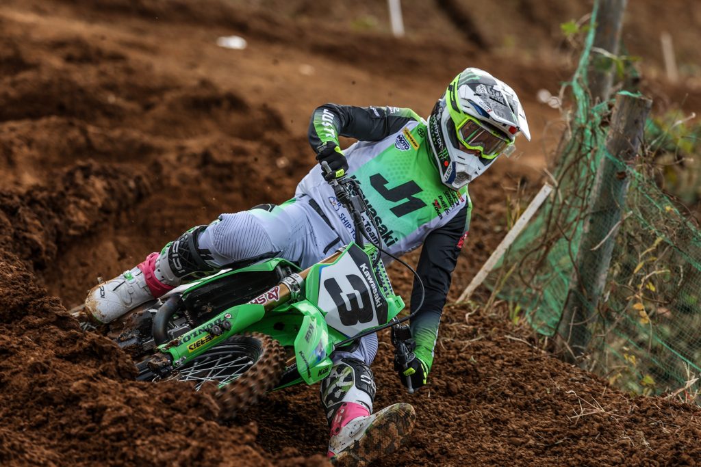これに続いたヤマハセカンドチームの大城魁之輔(#8)を抜き、ホンダファクトリーチームから世界選手権MX2に参戦するバレリオ・ラタ(#118)が2番手、ウィルソンが3番手にポジションアップ。