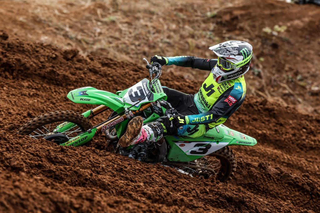 ヤマハファクトリーチームのジェイ・ウィルソン(#1)が、ホンダの大倉由揮(#4)を36点リードして臨んだ決勝ヒート1は、カワサキファクトリーチームからスポット参戦したモトクロス世界選手権MXGPチャンピオンのロマン・フェーブル(#3)が、ホールショットを奪った。