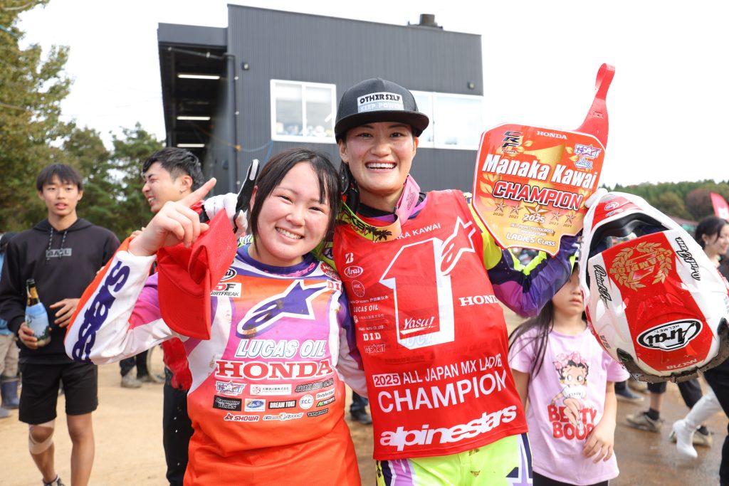 ホンダの4スト150ccとそれ以外の2スト85ccマシンが混走するレディースクラス。昨年は、ホンダ4ストに乗る川井麻央選手が連勝を重ね、最終戦で競り負けてシーズン全勝こそ逃しましたが、3年連続5度目のシリーズタイトル獲得を果たしました。