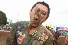 阿蘇の火山灰による黒土と、長年のメンテナンスで持ち込まれた褐色土が混ざった、独特な土質のHSRは、雨天時にはかなり過酷なコンディションになることでも有名。そして今大会は、予選が行われた土曜日から雨混じりの天候。決勝日の朝から激しい雨が降り、各クラスの決勝は完全なるマディコンディションで行われることになった。