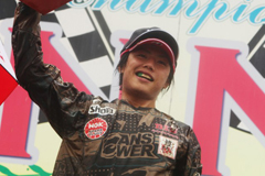 そして6周目に、福留が成田をパス。しかしすぐに成田が抜き返すと、翌周から成田は一気に福留との差を拡大していった。3番手だった熱田は、7周目にスタックして9番手に後退。これで3番手に浮上した小島庸平(#44)を、終盤に増田一将(#6)と平田優(#7)が追った。そして最終ラップの13周目、平田が3番手に浮上。成田、福留、平田、小島、増田の順でゴールした。そして成田が、福留以外の全員を周回遅れにする圧倒的な速さを見せつけ、今季の王者に!